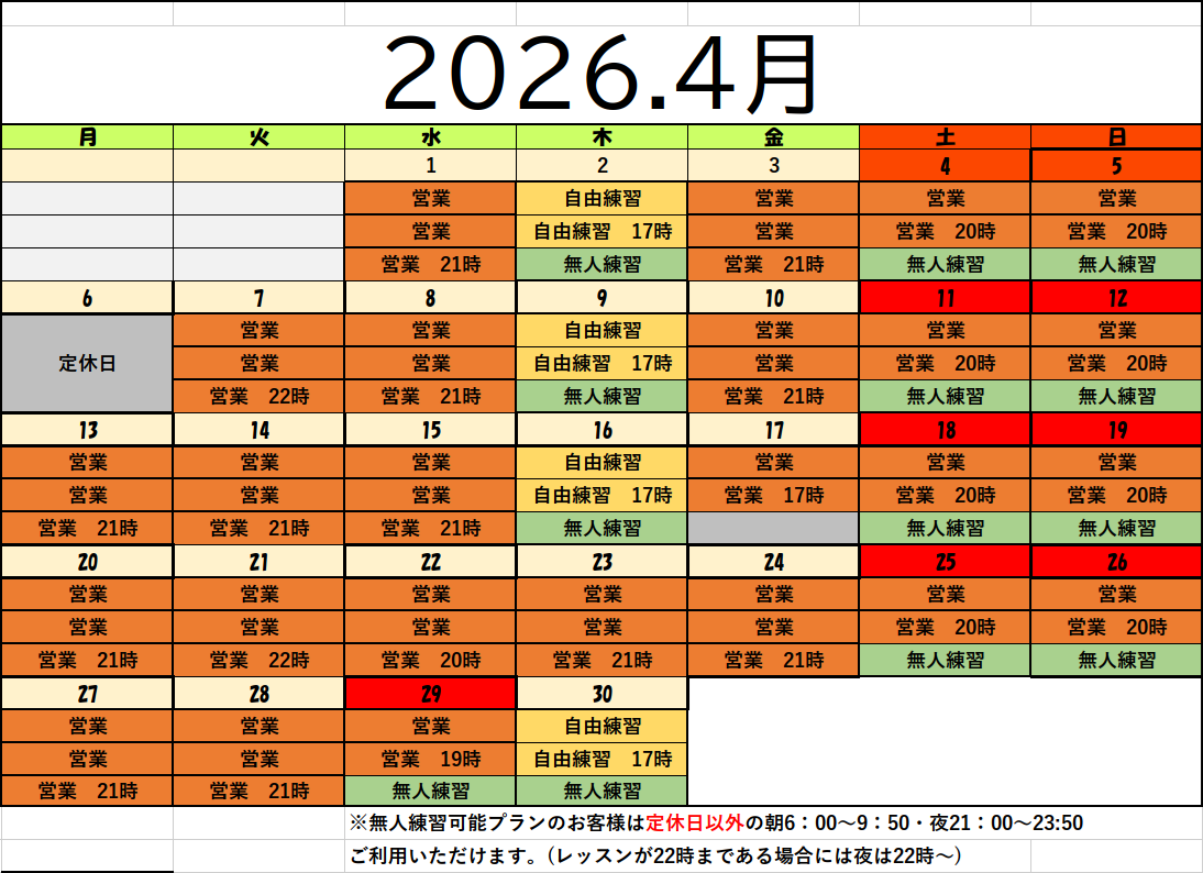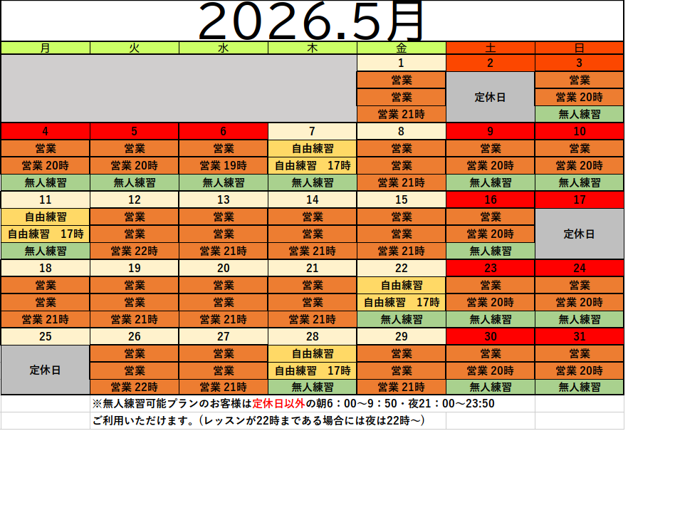 ※平日 10:00〜18:00はラウンドレッスンなどによりクローズとなる時間もございます。